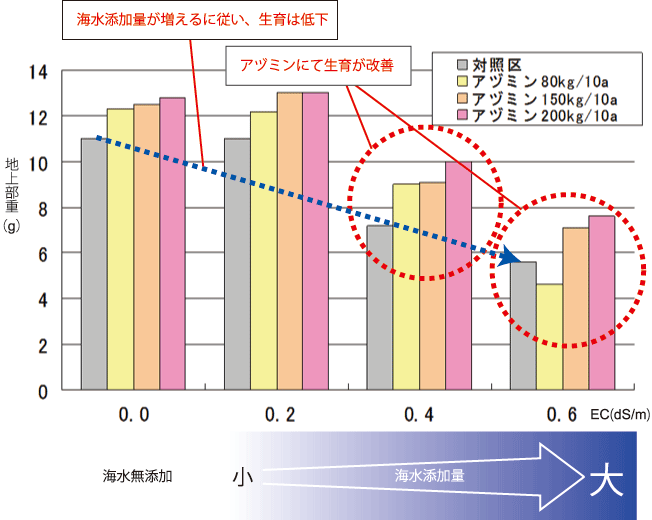 ⇒「塩類濃度の高い土壌におけるアヅミンの施用効果」参照
